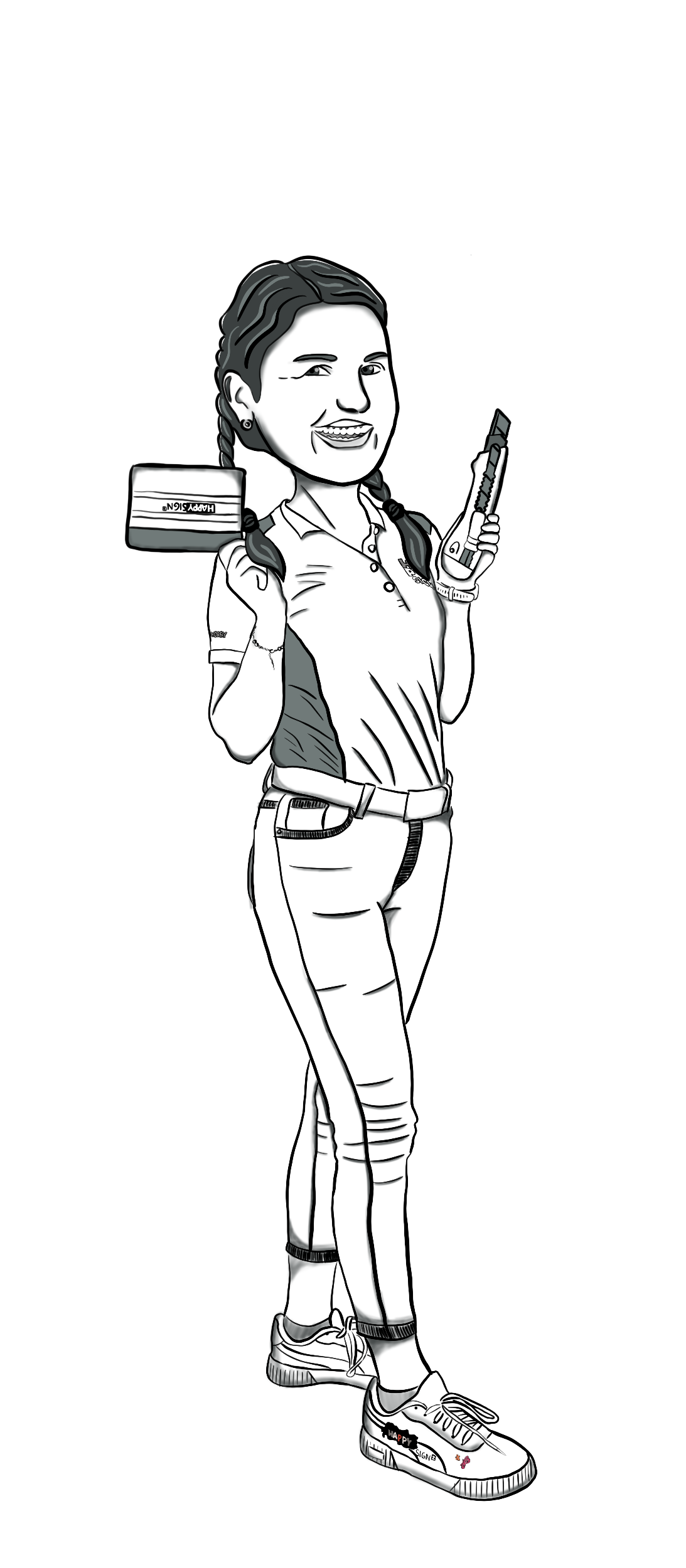 Kasia bringt bei HAPPY SIGNz immer gute Laune mit, egal ob sie an Textilien arbeitet, Fahrzeuge beschriftet oder bei der Montage hilft. Geduldig bis ins kleinste Detail, ist sie erst zufrieden, wenn alles perfekt sitzt.